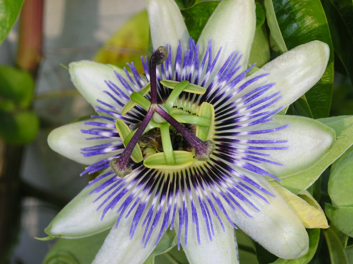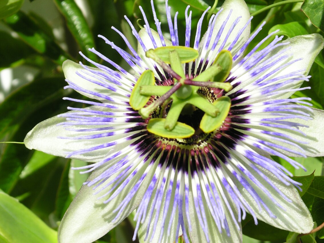 Und hier noch eine Premiere: Vor ein paar Tagen blühte diese aus Samen gezogene Kübelpassi nach acht Jahren erstmalig. Im Freiland hätte sie bestimmt viel früher geblüht.