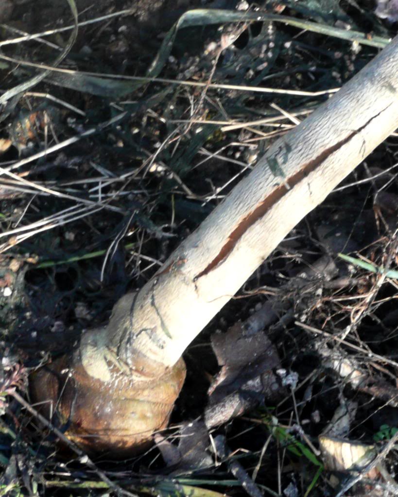 besser sah absolut böse aus der Böse Willi /*Eucalyptus debeuzevillei+/ und das wie oben gesagt bei "nur" -14 °- nachdem er im Winter vorher -21 ganz gut weggesteckt hatte. Unzwischen habe ich den aufgeplatzten Teil entsorgt und hoffe dass er sich aus dem Lignotuber(chen) wieder regeneriert;