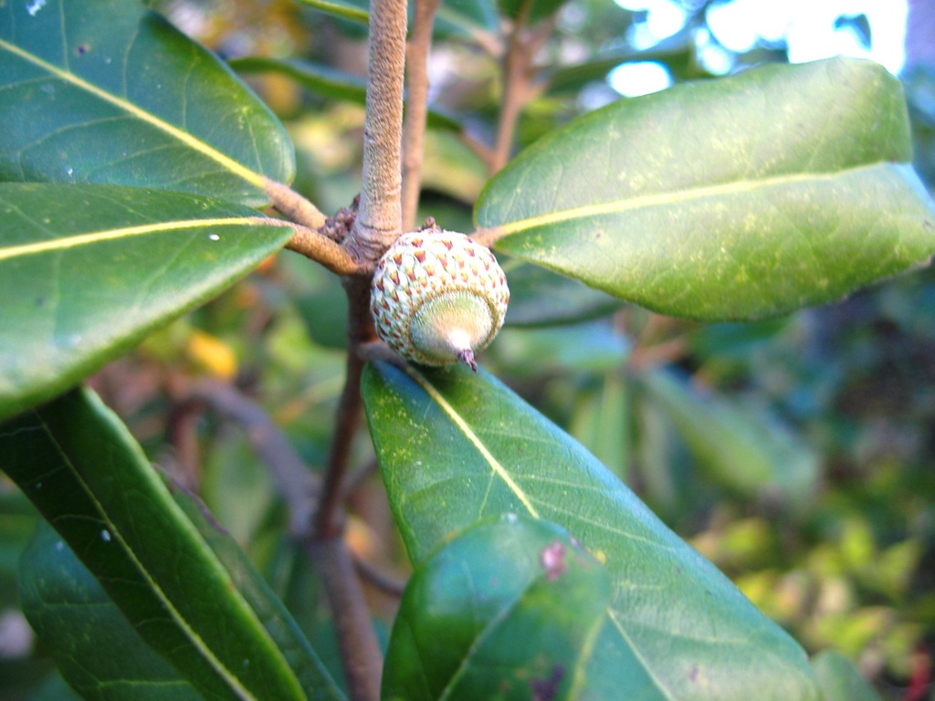 hier die noch Mini-Eichel der /*Quercus phillyreoides A. Gray*/ einer der härtesten immergrünen Arten - sehr viel größer wird sie allerdings auch nicht mehr, ist ein kleineicheliger Typ, kleiner als die meisten anderen Eichenarten, muss aber noch etwas reifen.