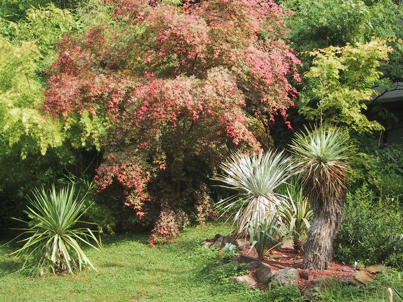 Man fragt sich hier zu Recht: Welchen Pflanzen sind hier beeindruckender, Yuccas oder Ahorngruppe??