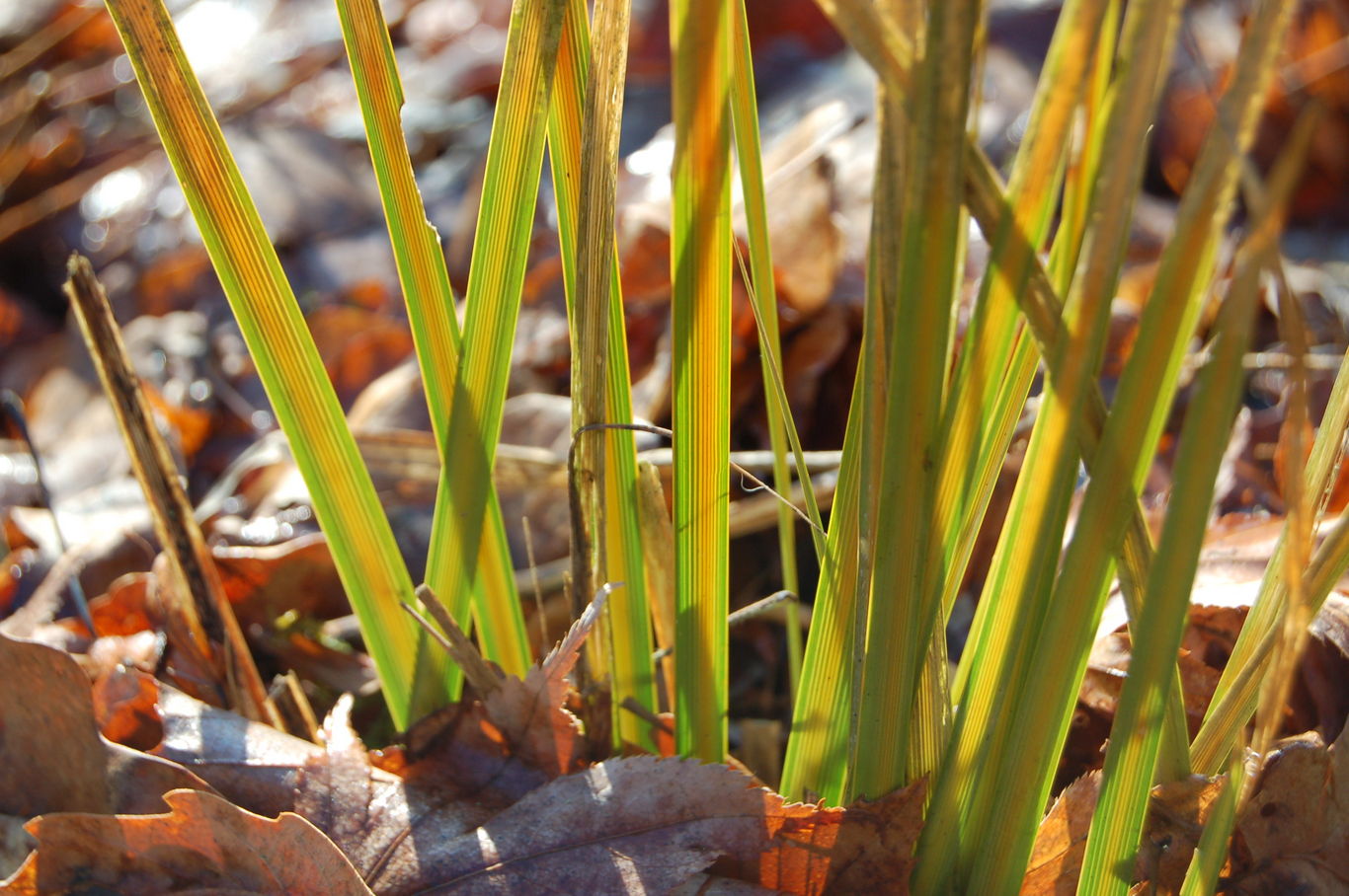 /*Libertia peregrinans*/, im oberen Blattbereich sieht man deutlich die Vitalitäts terminierende Schneegrenze