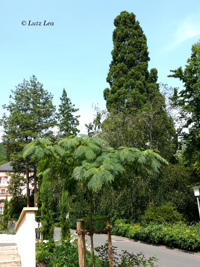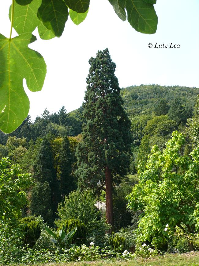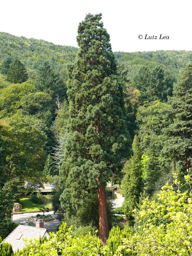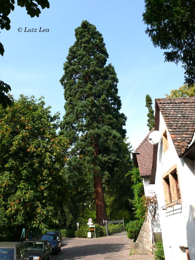 Soll an die 40 m hoch sein dieser Mammutbaum mit Blitzableiter (bereits als Naturdenkmal ausgewiesen)!