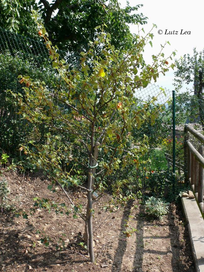 Weitere ausgepflanzte Trachies und Albizien am Teich.