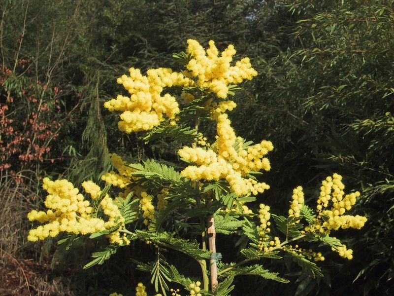 Leider nur als Kübelpflanze bei mir blühend: /*Acacia dealbata-Hybride*/. Meine bisherigen Auspflanzversuche mit Acacia dealb. subalpina schlugen sämtlich fehl!
