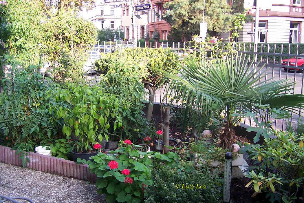 eine recht interessante mediterrane Auspflanzung von Exoten hat ein Grieche im Vorgarten des Hauses in der Daneckerstraße 30, in Frankfurt am Main Süd (Sachsenhausen) geschaffen.
