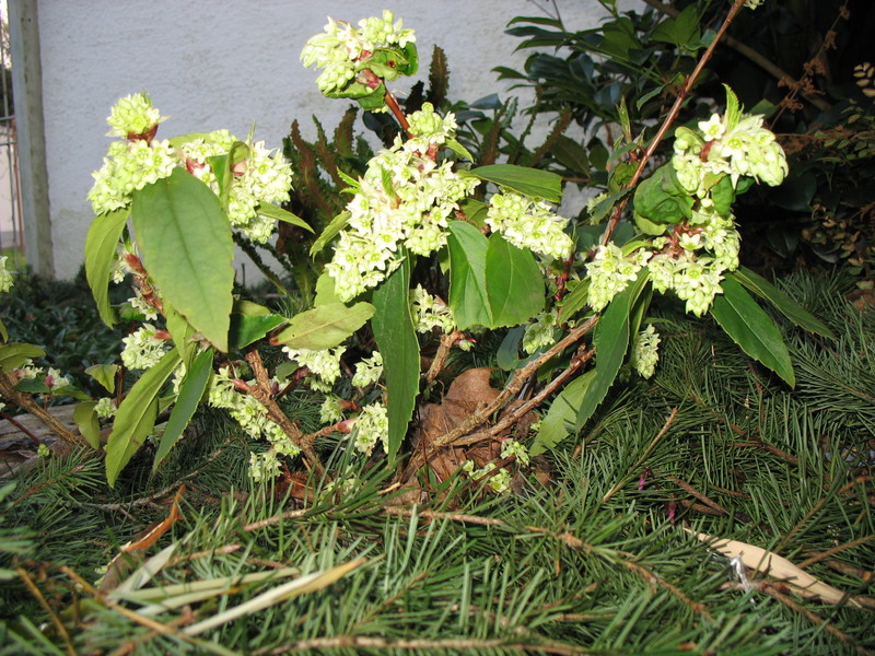 Ribes laurifolium ist bereits voll erblüht. Sollte gerade wegen der moderaten Größe in keinem Exotengarten fehlen.