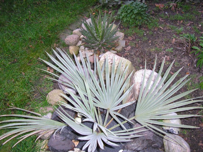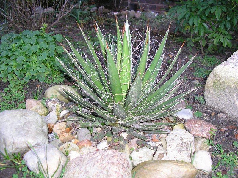 Die Agave schidigera steht ja mit Topf versenkt in der Erde, ist also bei drohenden tieferen Frösten schnell in Sicherheit zu bringen.