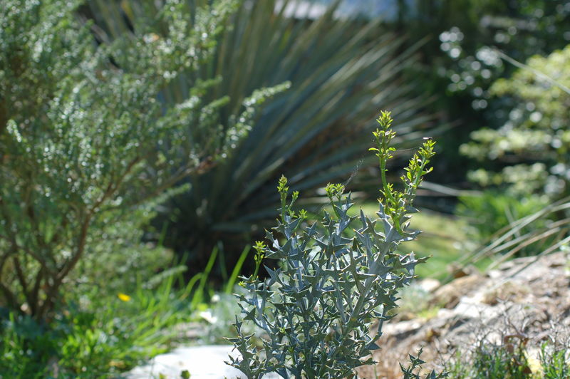 /*Colletia cruziata*/, die Ankerpflanze passt ausgezeichnet ins Succulentenbeet (hi: Tasmanische Minze u. Yucca X Karlsruhensis