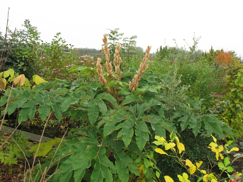 aber hat /*Tetrapanax papyrifera 'Rex'*/. Hier mit Blütenstand, welchen ich zuvor noch nie bewusst wahrgenommen habe.