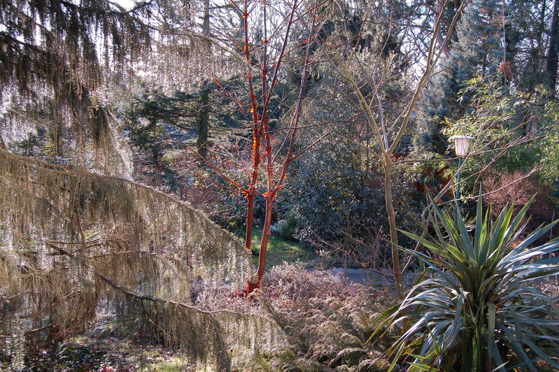 /*Acer griseum*/ und Picea breweriana im Gegenlicht!