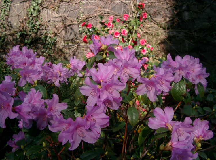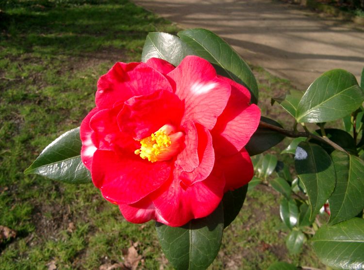 Diese Kamelie am Main hat eigentlich schon den ganzen Winter geblüht.