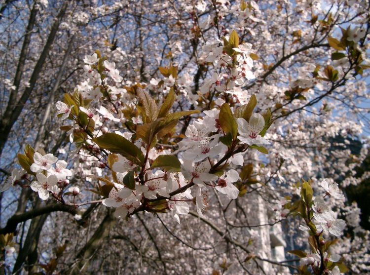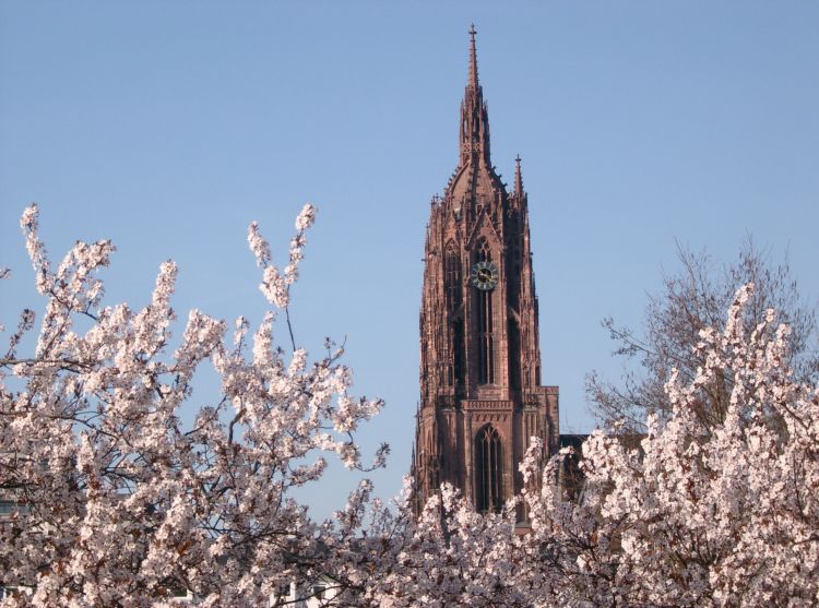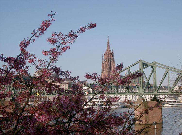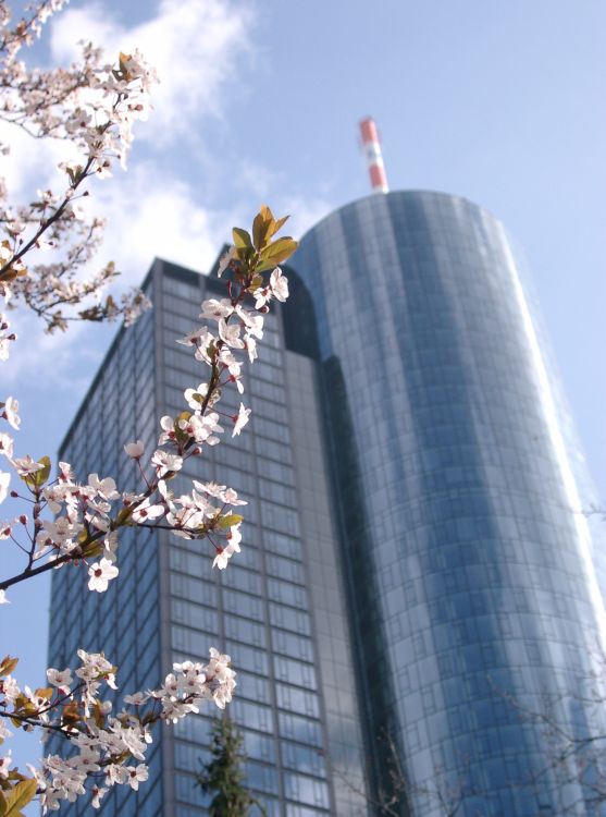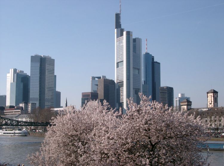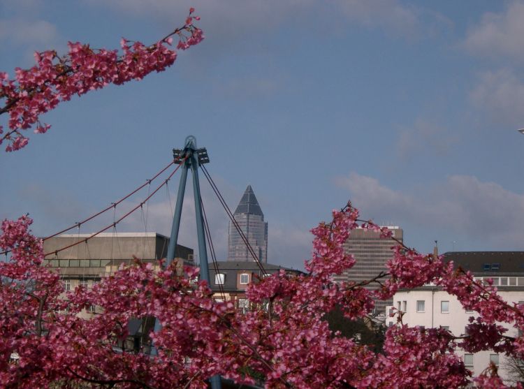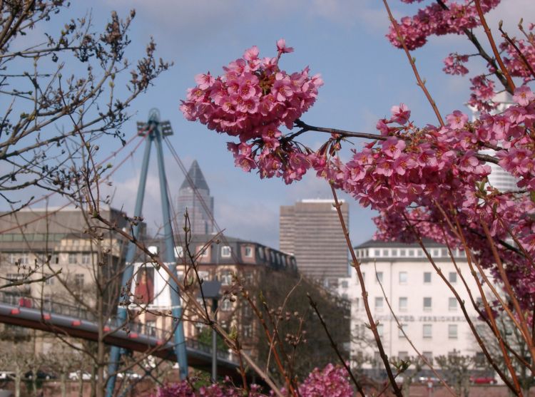 Die Blüten machen sich auch ganz gut vor der Hochhäuserkulisse Frankfurts