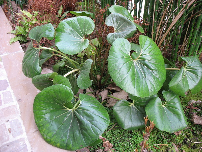 eine andere Form der Art mit sehr großen nierenförmigen Blättern. Sie hat sich als relativ frostempfindlich letzten Winter gezeigt. Nach dem ersten Frost waren die Blätter Matsch.