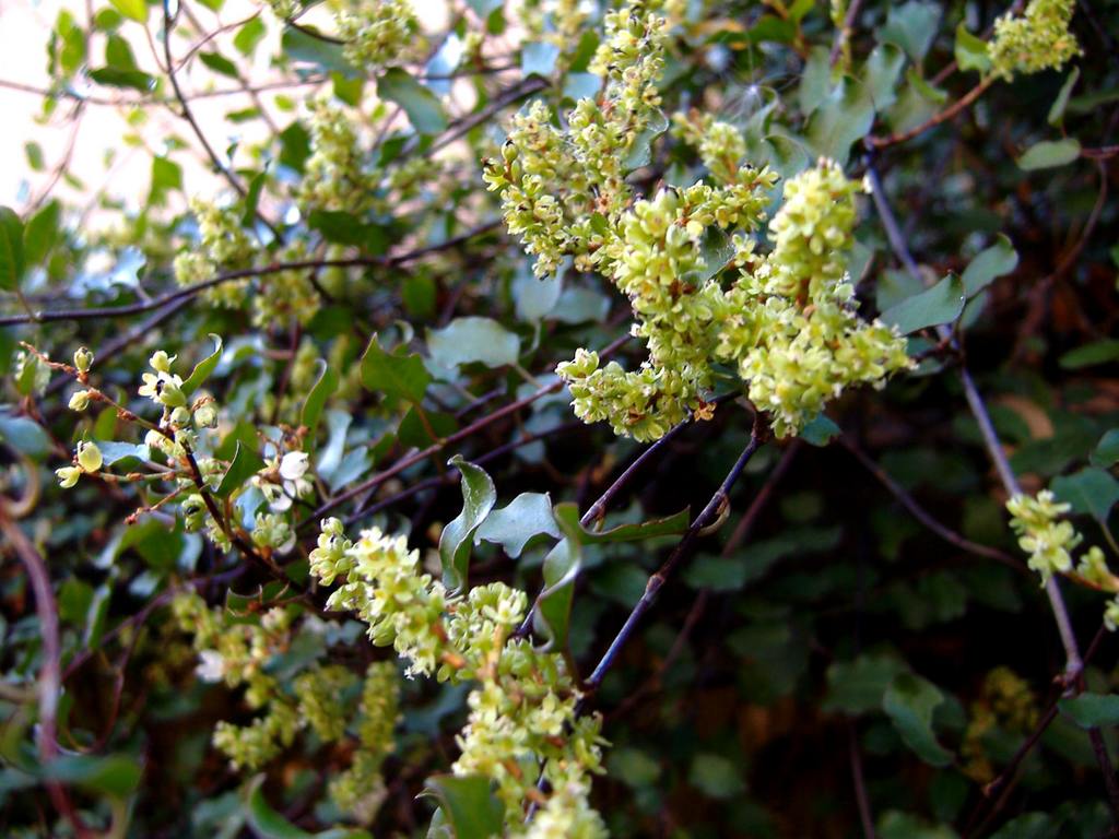 Ganz interessant ist die Fruchtbildung der Muehlenbeckie, die erst grünlichen Kelch- und Blütenblätter "vergrößern" und "verdicken" sich zu weißen, süßen und saftigen "Früchten" in der Mitte ein schwarzes Nüsschen - roh oder gekocht lecker. Aber winzig, verglichen mit Lutz’ Feigen weiter unten, Übergewichtig wird man davon kaum.