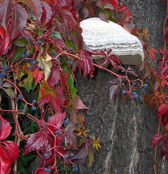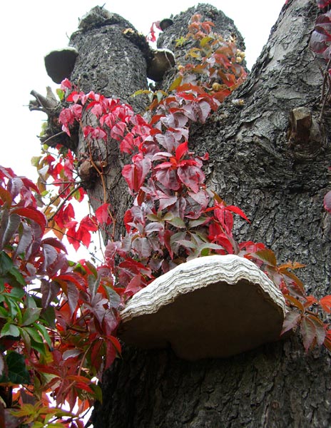 ein alter toter kastanienstamm wird von baumpilzen erobert