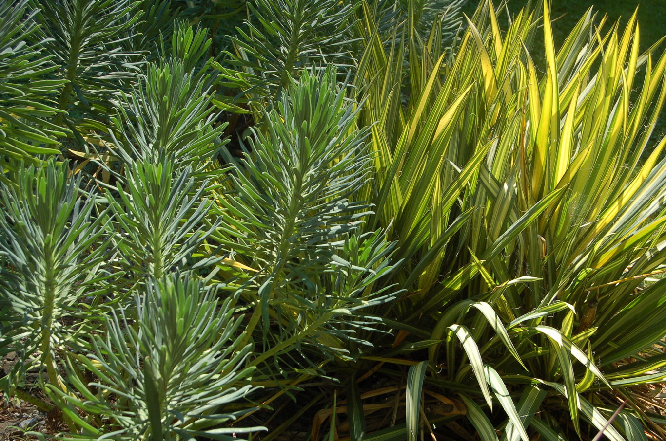 /*Euphorbia characias Wulfenii*/ neben /*Yucca flaccida Variegata*/#AM