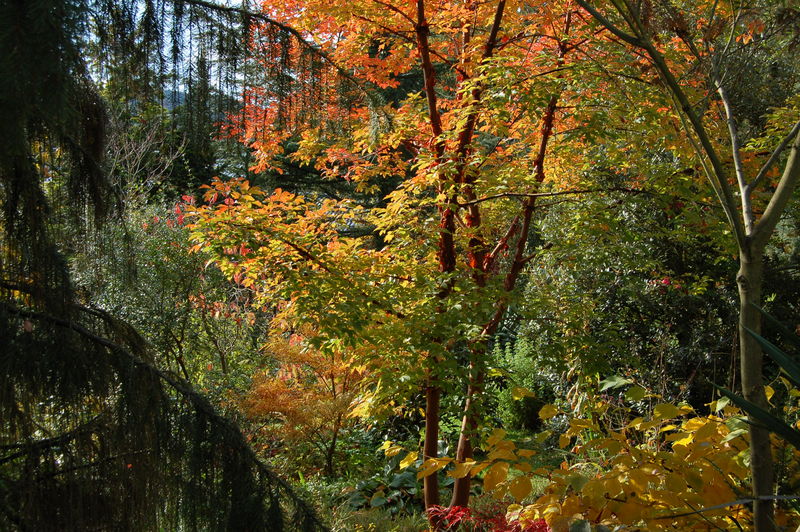 2.Hier von li Picea breweriana, dann rotgolden /*Acer griseum*/ re Albizzia