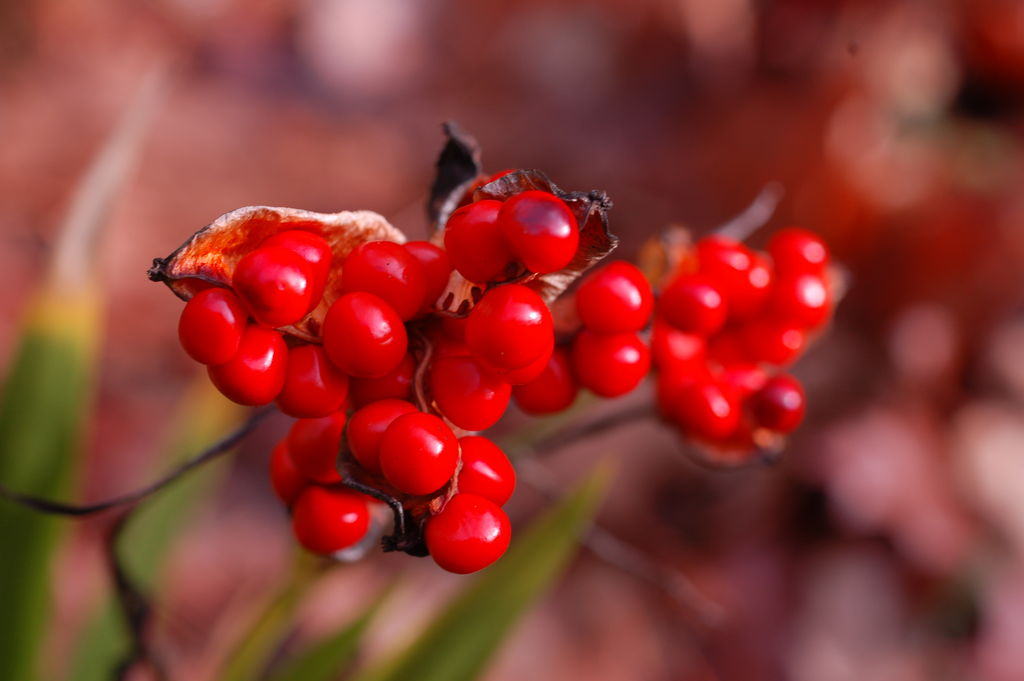 /*Iris foetidissima*/ mit leuchtendem Fruchtstand