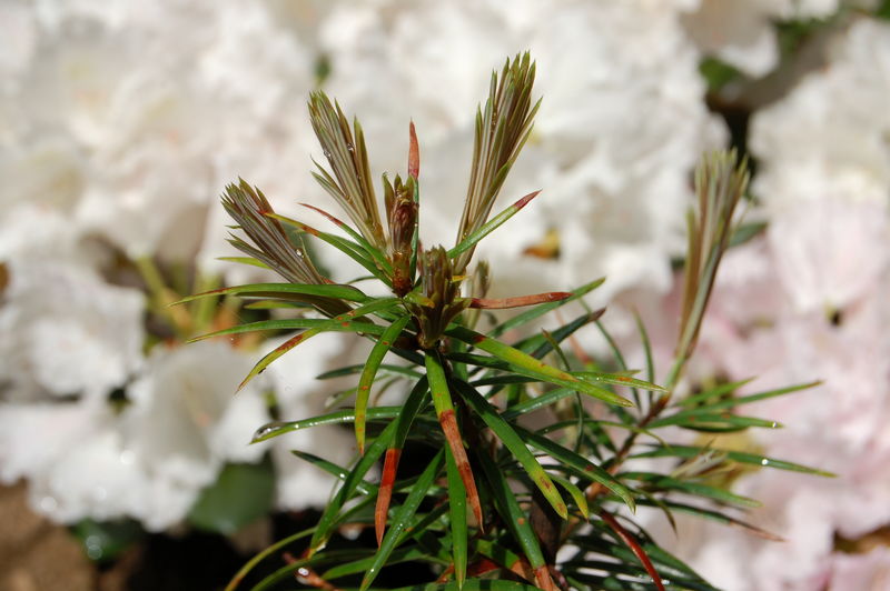 Lange schmale Nadeln,im Austrieb rötlich, mit weißl. Stomastreifen zeichnen /*Keteleeria evelyniana*/ aus
