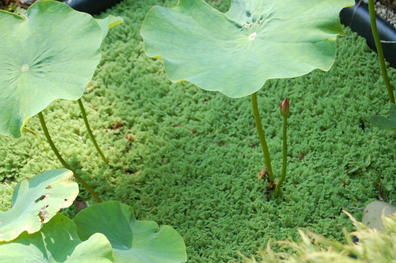 vor 3 Jahren gesetzt, entwickelt /*Nelumbo lutea*/ jetzt erstmals Blüten (allerdings sehen die etwas rötlich aus, wenn dem so ist, könnte es auch eine andere Art sein (allerdings sind die nicht so winterhart!)