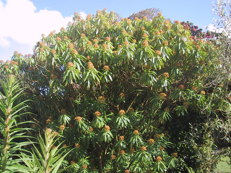 Obwohl sie von den Inseln Madeira und Gran Canaria stammt, hat sie sich als erstaunlich hart erwiesen (selbst in Sissinghurst):/*Euphorbia mellifera*/, die jetzt auch in verkleinerter Ausgabe in meinem Garten steht