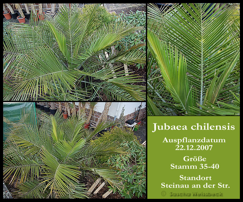 nachdem ich hier ja schon mal berichtet hatte das ich meine bis jetzt größere Jubaea im gefrohrenem Fischstäbchenzustand gepflnazt hatte und der Dauerfrost ca. 3 Wochen angehalten hatte hier nun die ersten Bilder.