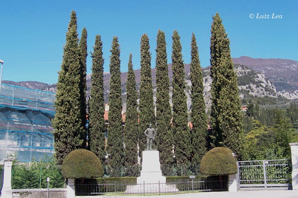 Am Ende der Allee der "Viale delle Magnolie" diese Statue des Erzherogs von Habsburg, mit der typischen Bepflanzung von sehr schlanken