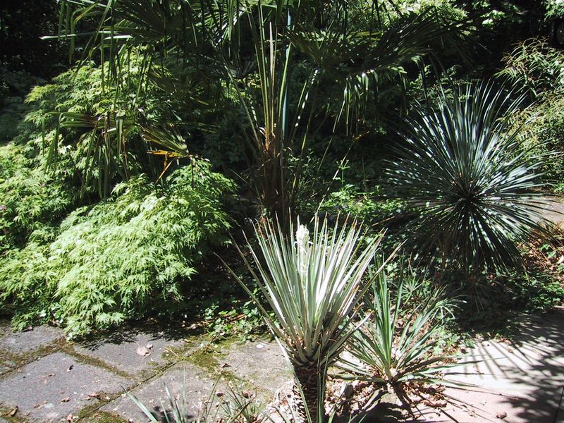 Hier sieht man deutl. die Unterschiede der 2 wunderschönen Yuccas: rigida starrer,weißblau u. rostrata eleganter, blaugrauer mit längerem,schmalerem Blatt