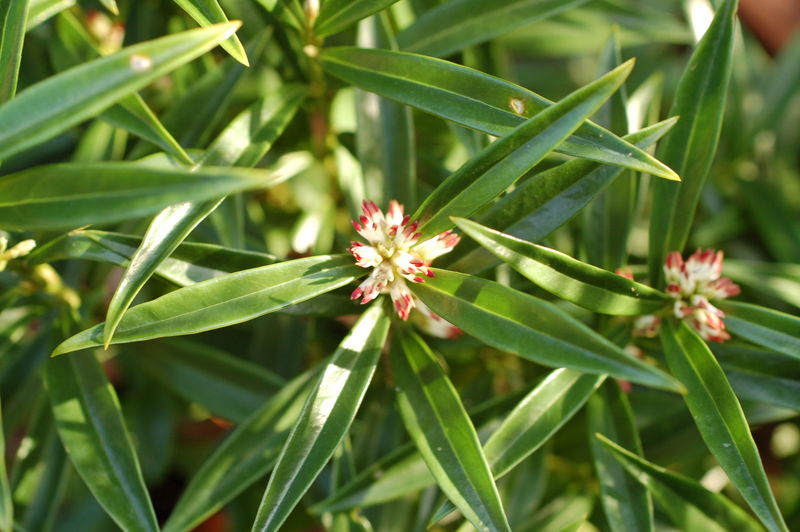 Als verspäteter Nachtrag zu oben:/* Sarcococca saligna*/ aus dem Himalaya, mit duftenden Blüten