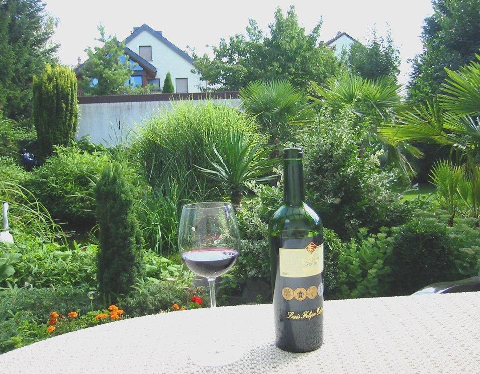 Ein guter Ein(Wein)Blick von der Terrasse auf den Garten :