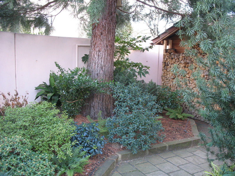 und eher noch schwieriger die Unterpflanzung von Sequoiadendron giganteum: Daphne laureola ssp. philippii, D. tangutica, Danae racemosa, Aspidistra elator, Ruscus aculeatus, Sarcococca orientalis u. S. confusa, Fatsia japonica