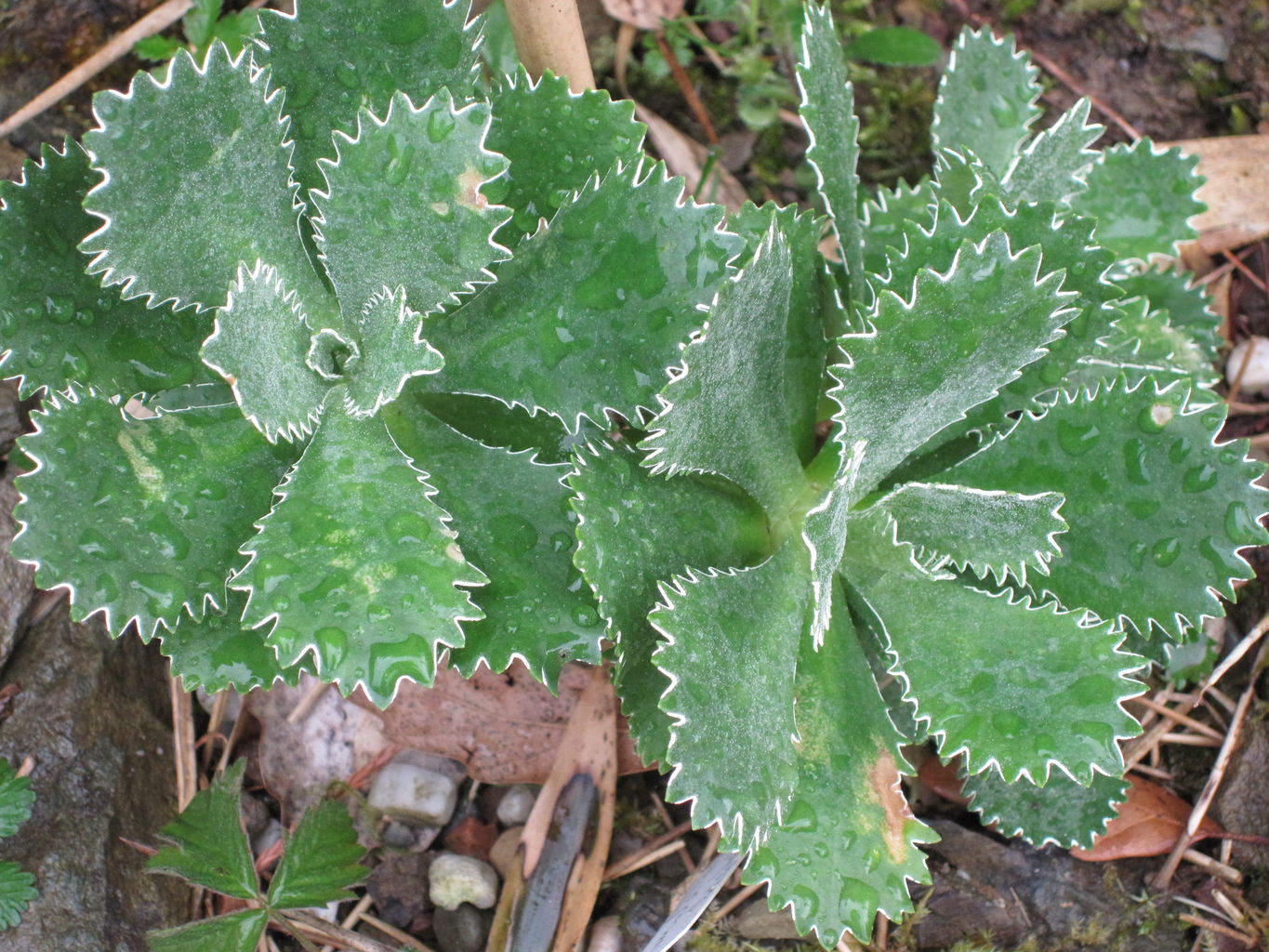 /*Primula marginata*/ im Yuccabeet wird deutlich größer und sieht ohne Blüten irgendwie "außerirdisch"