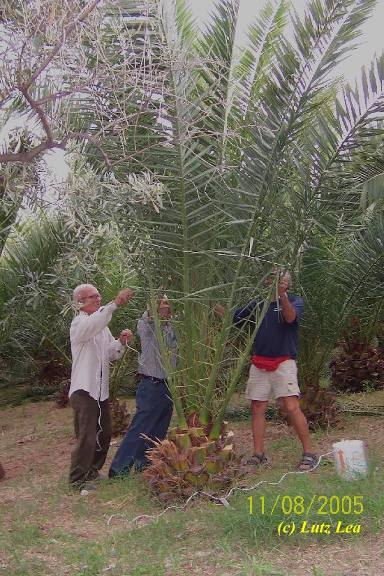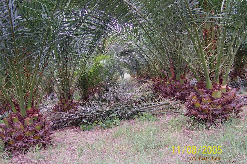 Hier waren Bedienstete gerade damit beschäftigt die Fiederblätter von 'Poenix c.' Palmen zusammenzubinden. Vermutlich um Platz zu sparen und den späteren Abtransport (Auslieferung) zu vereinfachen!?