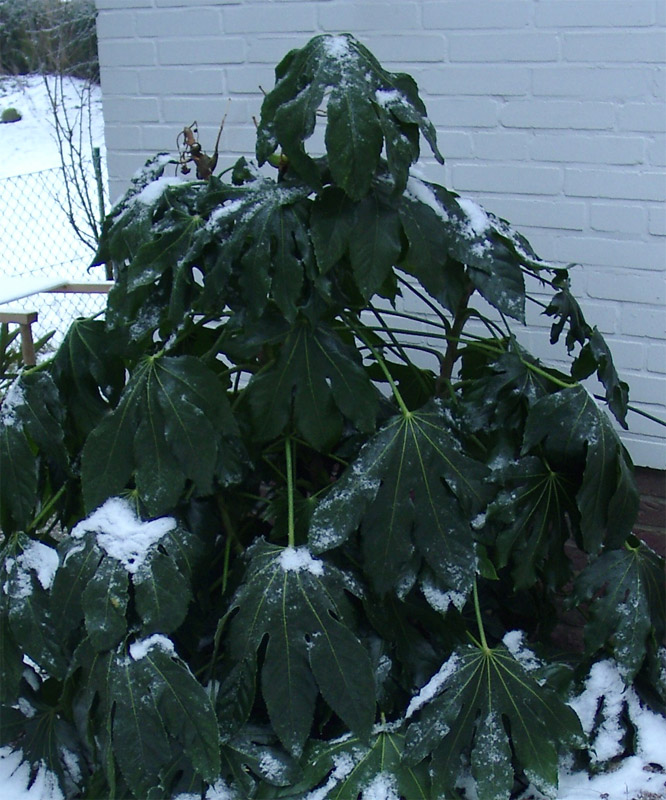 Gut, daß ich noch ein paar Kübelpflanzen eingeräumt habe. Die Passiflora sieht recht lädiert aus.