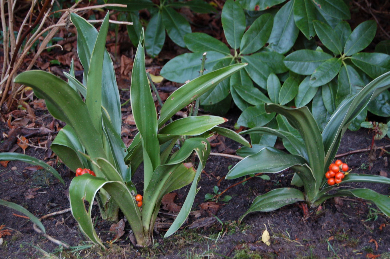 Zwei Rohdea-Selektionen von Rohdea japonica Marginata: eine aufrecht und eine in die Breite wachsende Form.#AM
