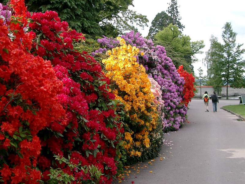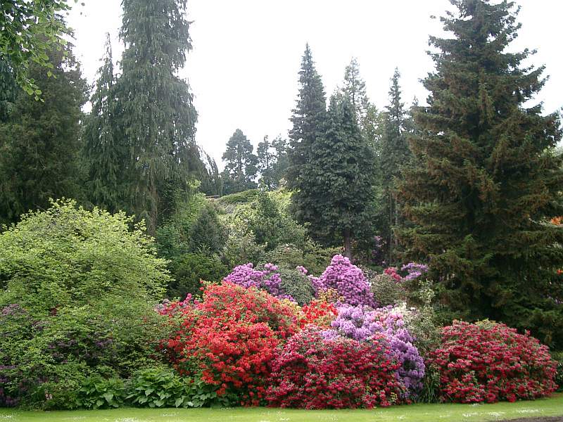 Um etwas Farbe hineinzubringen jetzt die Rhododendronblüte. Leider waren die Blüten zum Teil etwas verregnet und zum Teil auch schon am Verblühen.
