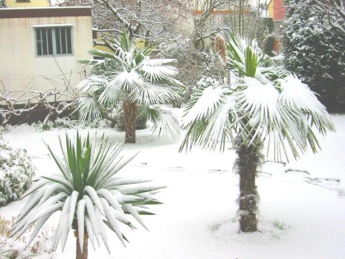 Letzten Winter =3/04 an Weihnachten leichter Schneefall und dann zur Überraschung am 6 März nochmal stärkeren Schneefall!(Bild ist v.6.3.04)