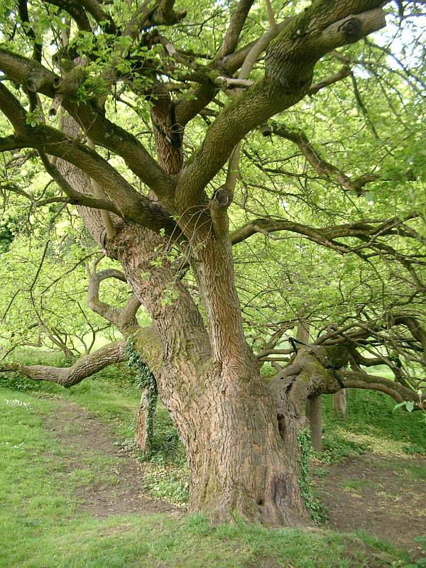 Zwischen den Wild- und Strauchrosen steht dieser alte Maulbeerbaum (/*Morus alba*/) als Überbleibsel einer einstigen Allee.