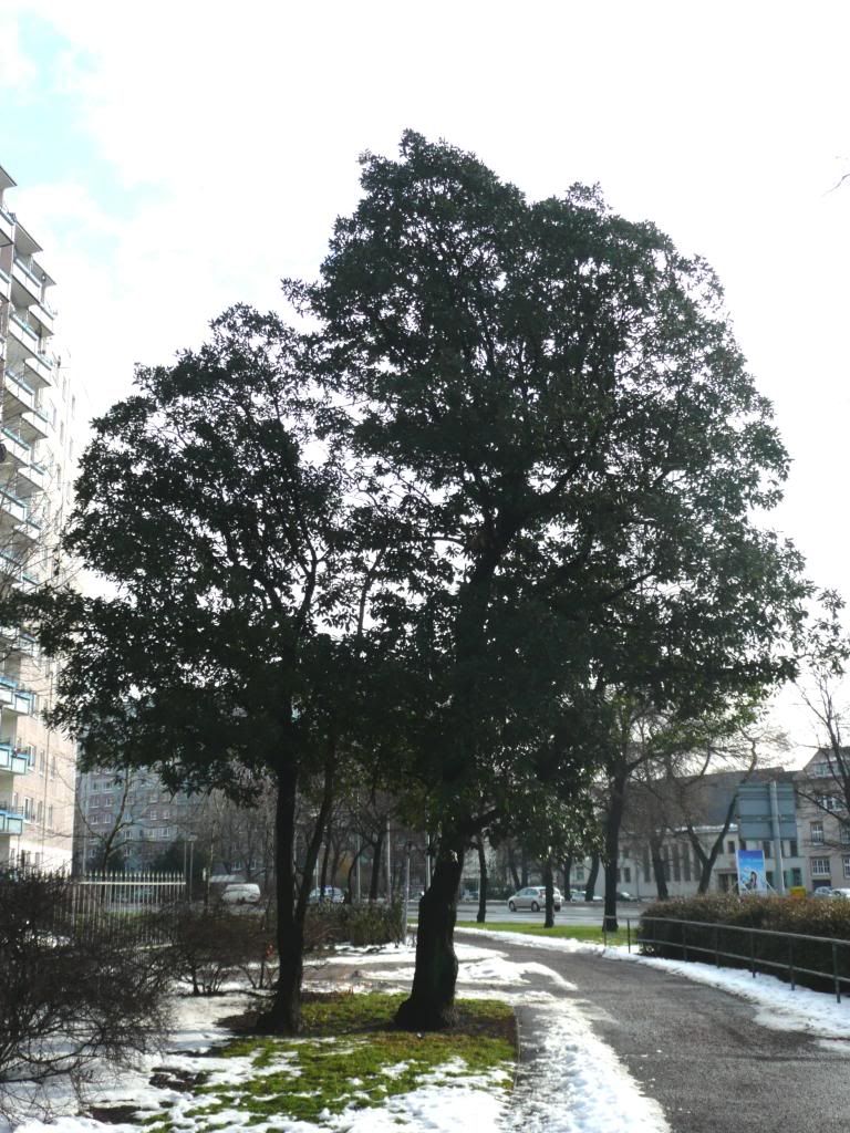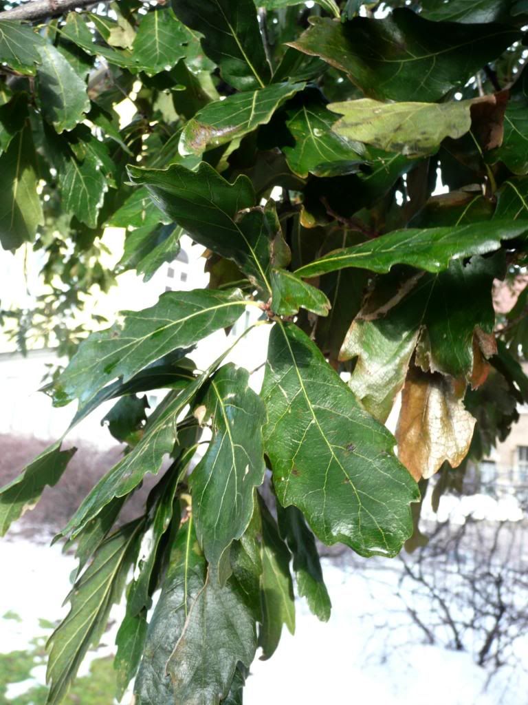 Wie auch immer, auf der richtigen? Unterlage (s. u.) bleibt beispielsweise auch die /*Quercus x turneri 'Pseudoturneri'*/ nahezu voll belaubt, wie diese Beiden hier in Erfurt. Aufnahmen vom Januar 2010 während einem Tauwetterintermezzo - nach Temperaturen am Standort von schätzungsweise -15...16 °C (off. DWD-Stat. EF-Bindersleben Tmin -17,6)