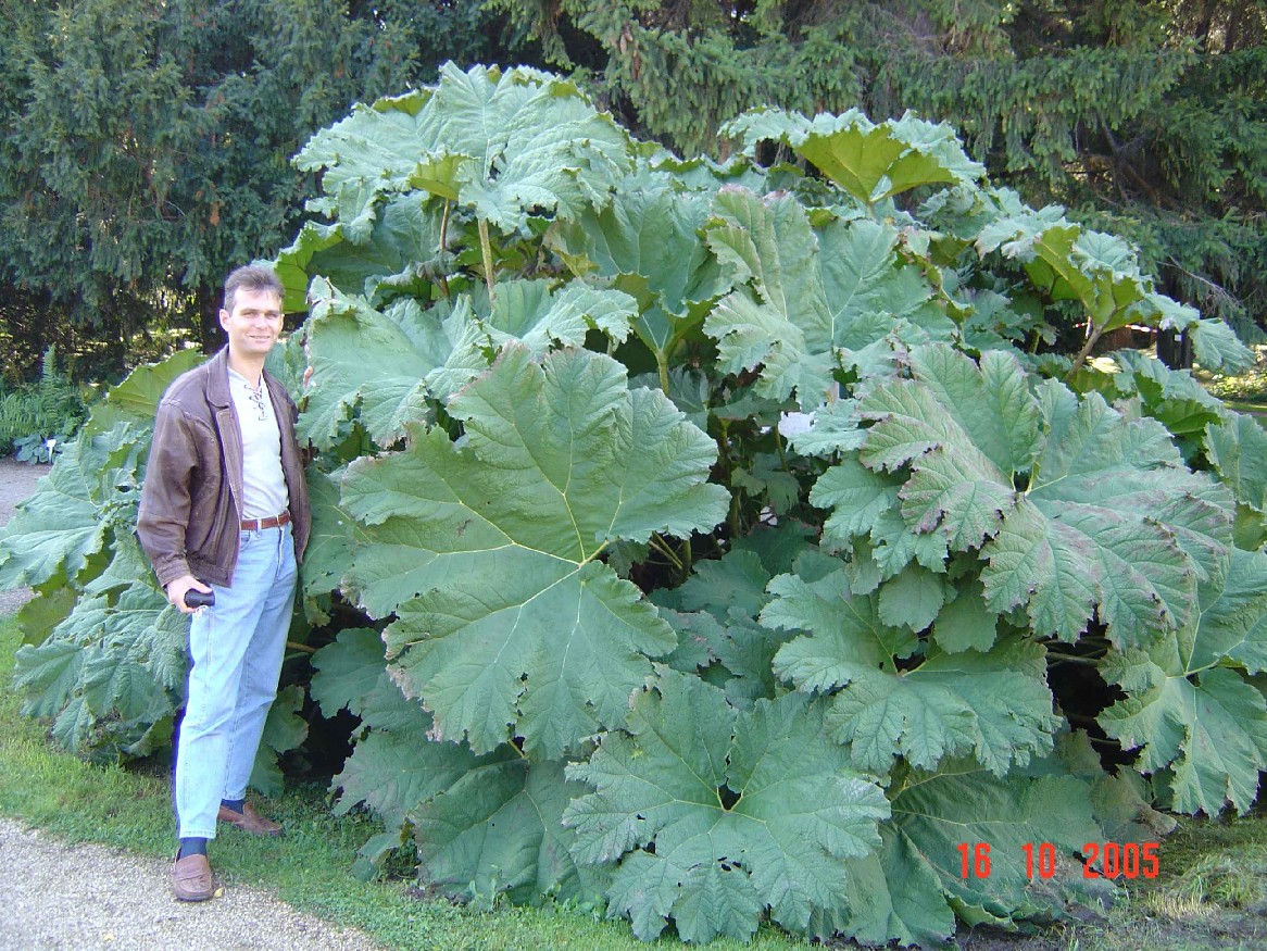 Gunnera manicata, Mammutblatt, Peter wirkt direkt etwas klein daneben (obwohl er es nicht ist):