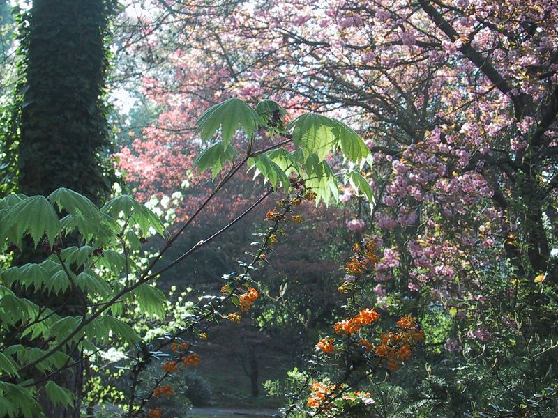 1.Bild: Acer japonicum aconithifolium mit Berberis X lologensis u. Prunus serrulata Kanzan