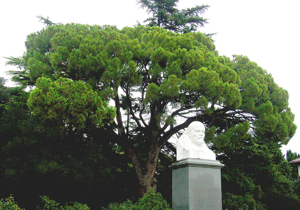 Eine eher seltene Konstellation: /*Pinus pinea*/ mit dem Genossen Lenin: