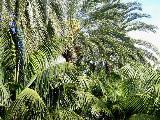 ...und hier ein winziger Ausschnitt aus dem Palmenpark in der Hacienda San Jorge in Los Cancajos. Unter anderem mit der allgegenwaertigen /*Phoenix canariensis*/ (Bildmitte)