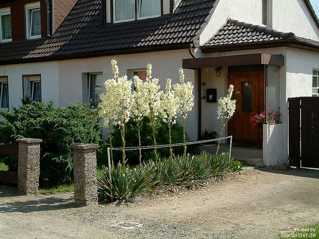 Interessant zu wissen das diese Yuccas laut Aussage der Besitzerin jedes Jahr ca. 2 m hohe Blütenstände ausbilden. Im eigenen Garten sowie bei Yuccas im öffentlichen Grün ist mir aufgefallen, das im Jahr 2003 - wohl als Folge der Trockenheit - die Blütenstände ca. 10-20 cm kürzer ausgefallen waren als 2004 (jede Menge Niederschlag).