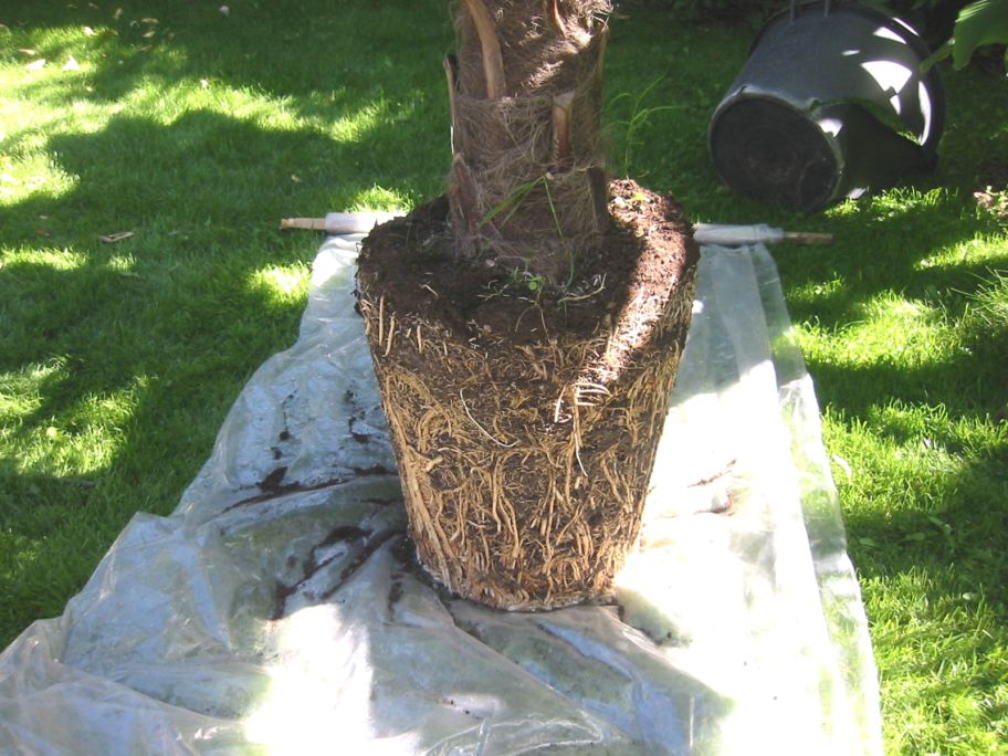 Der Wurzelballen war regelrecht ausgetrocknet, ein Wunder das die Palme noch in so einem halbwegs guten Zustand war!