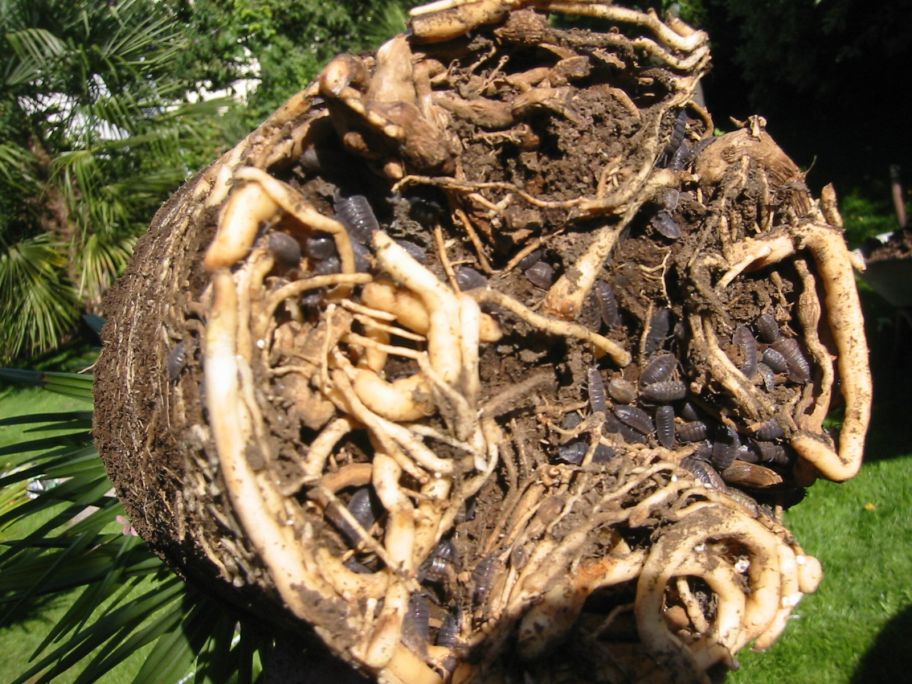 das hier ist der Wurzelballen einer 3 jährigen selbstgezogenen Trachy,diese wurde von mir auch vernachlässigt und hätte schon längst umgetopft werden müssen.
