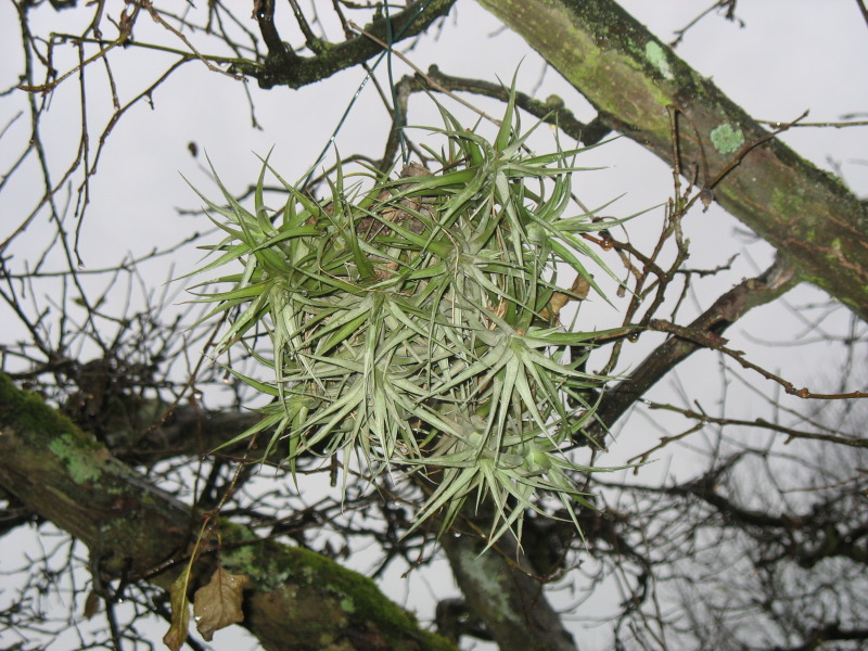 ...aber der Laubfall brachte es wieder zu Tage. Im Apfelbaum hängen noch ein paar Tillandsien rum. Mitbringel von Mallorca, wo sie angesiedelt auf Bäumen und in Mauerwerk wachsen. Ein paar ganz leichte Nachtfröste sollten sie somit schon aushalten, aber bevor es ernsthaft kalt wird.... - also, Knoten ins Taschentuch