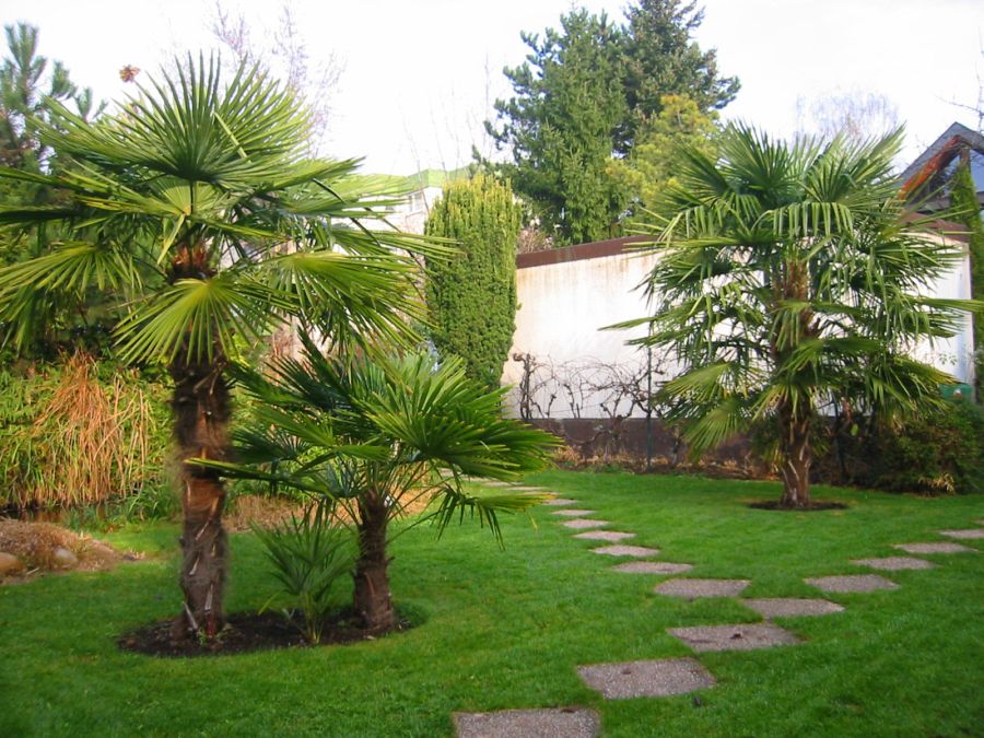 etwas skeptisch war ich beim recht späten auspflanzen der beiden kleineren Trachies, Mitte September diesen Jahres. Sie sind aber neben der größeren Trachy die bereits im März 2000 gepflanzt wurde, in dem ungewöhnlich warmen Herbst recht gut angegangen….und wachsen jetzt noch!