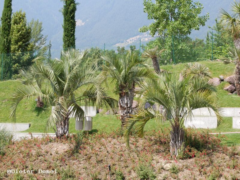 Mir stellte sich die Frage, wie die Butias im Winter geschützt werden. Wie uns der Gärtner berichtete, sind diese Butias nicht