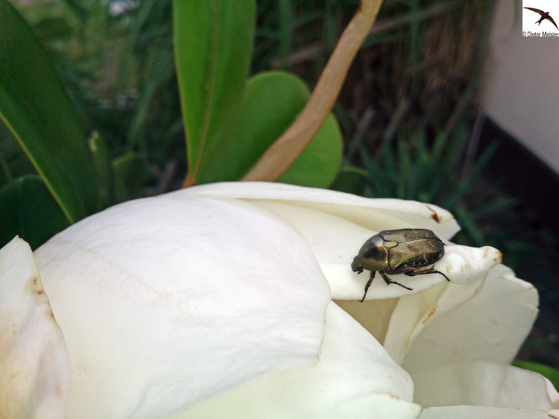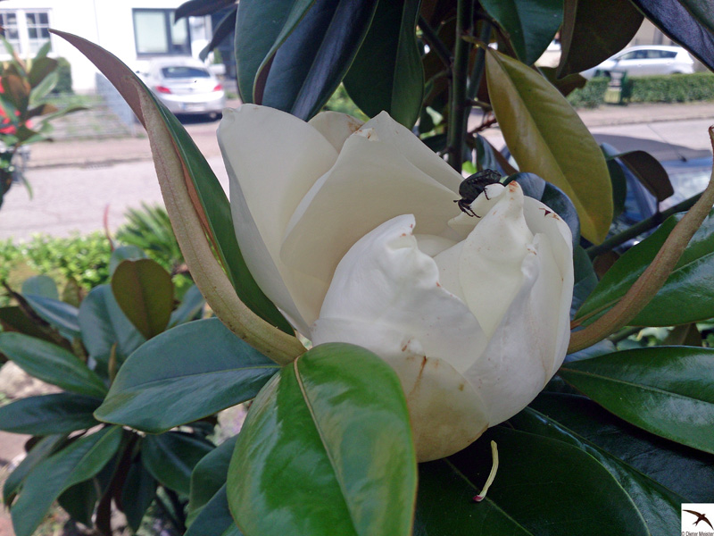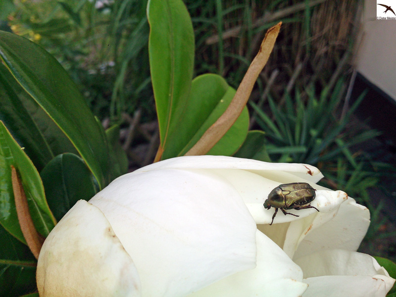 Unbekanner Käfer an meiner Blüte der Magnolia grandiflora.
